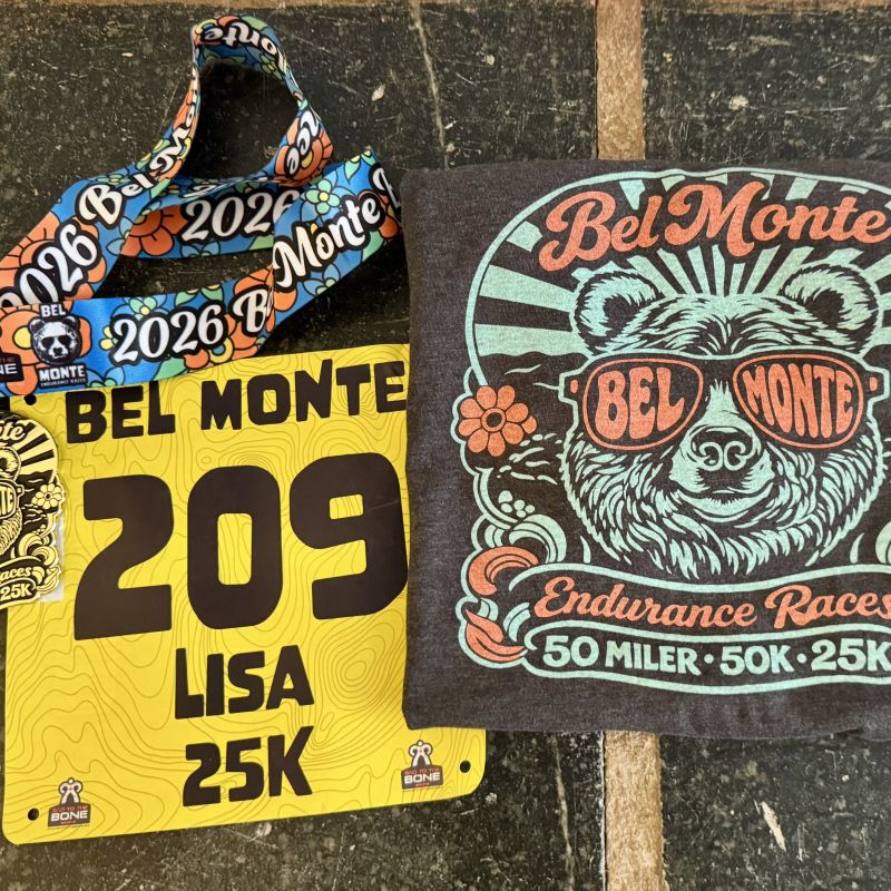 Very beautiful & very technical race thru the Blue Ridge Mountains of VA. The 25K has 2,541 feet of gain & loss on single / double track trails, Jeep road (w/ so many rocks), gravel & pavement. Love the soft SS tee and matching finishers medal!