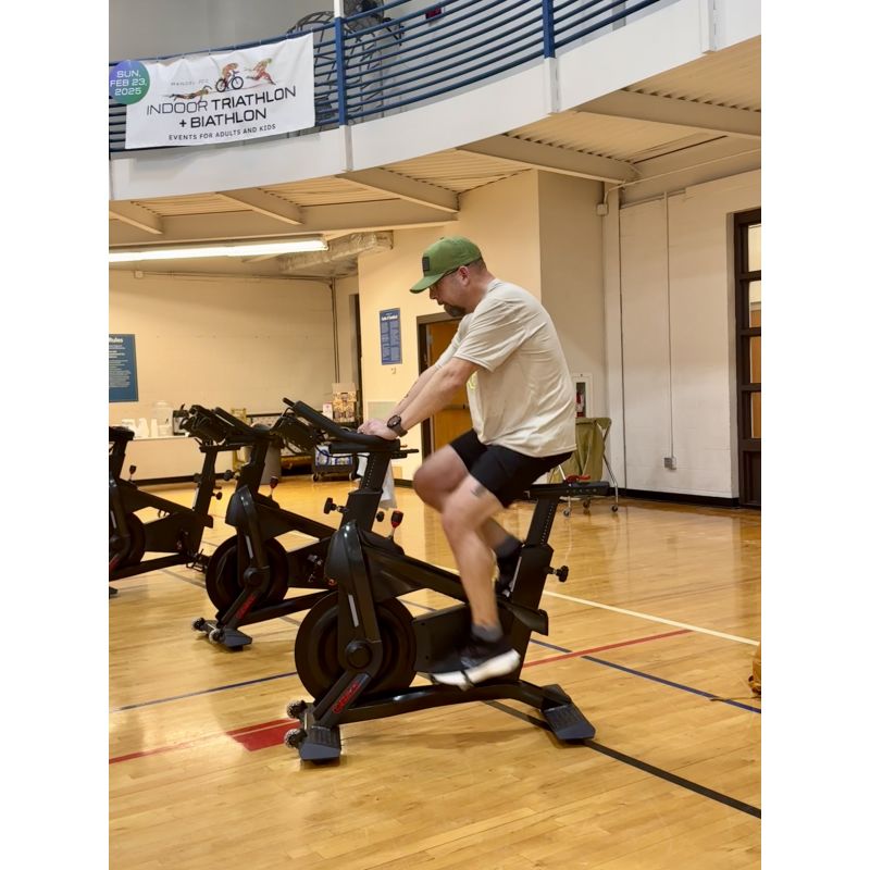 Great family friendly indoor triathlon and biathlon. Competitive and a lot of fun. Exceptional facilities and well supported. Nice cotton t and a hand towel.