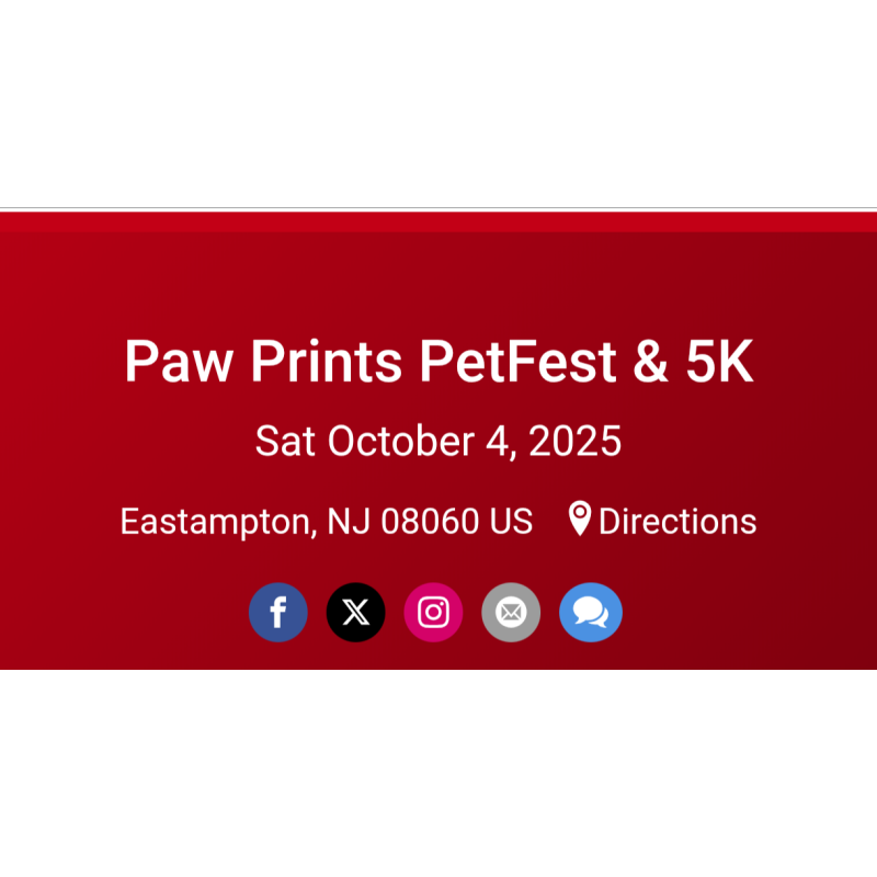 The Paw Prints PetFest & 5K is a non-profit community event that attracts 3,000+ attendees to raise awareness and funds to help homeless animals in Burlington County. As an all-volunteer organization, 100% of the event’s proceeds go directly to funding medical care, training, foster support, TNR and other important life saving programs.