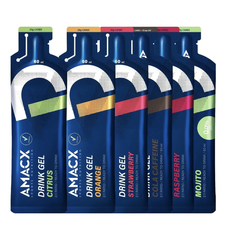 Formulation: the AMACX drink gel ingredient list reads: Water, maltodextrin, fructose, caffeine, sodium citrate, sodium chloride, acidity regulator (citric acid), thickener (xanthan gum), preservatives (potassium sorbate, sodium benzoate). Each 60 mL gel delivers 30g of carbohydrates in a 2:1 glucose to fructose ratio. Every flavor delivers 200mg of sodium and the caffeinated option contains 75mg of caffeine. It's worth pointing out that the main difference between the Neversecond C30 formulation and AMACX are the types of thickeners and preservatives. AMACX uses xanthan gum rather than pectin and sodium benzoate as well as potassium sorbate.