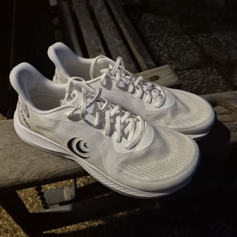 The shoe uses a formulation of Topo's ZipFoam, which provided a nice ride with some ground feel and responsiveness under foot. The shoe has nice flex to it, which was beneficial for the calf raises, sprints and track work used with the shoe. The underfoot feel of the foam to me has a great balance of enough responsiveness without too much stack for a multi-purpose shoe.