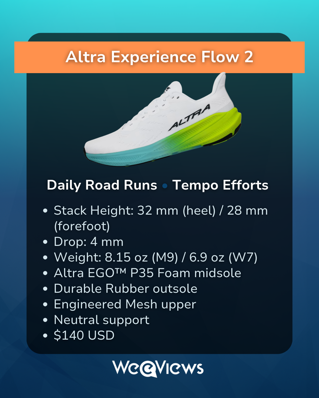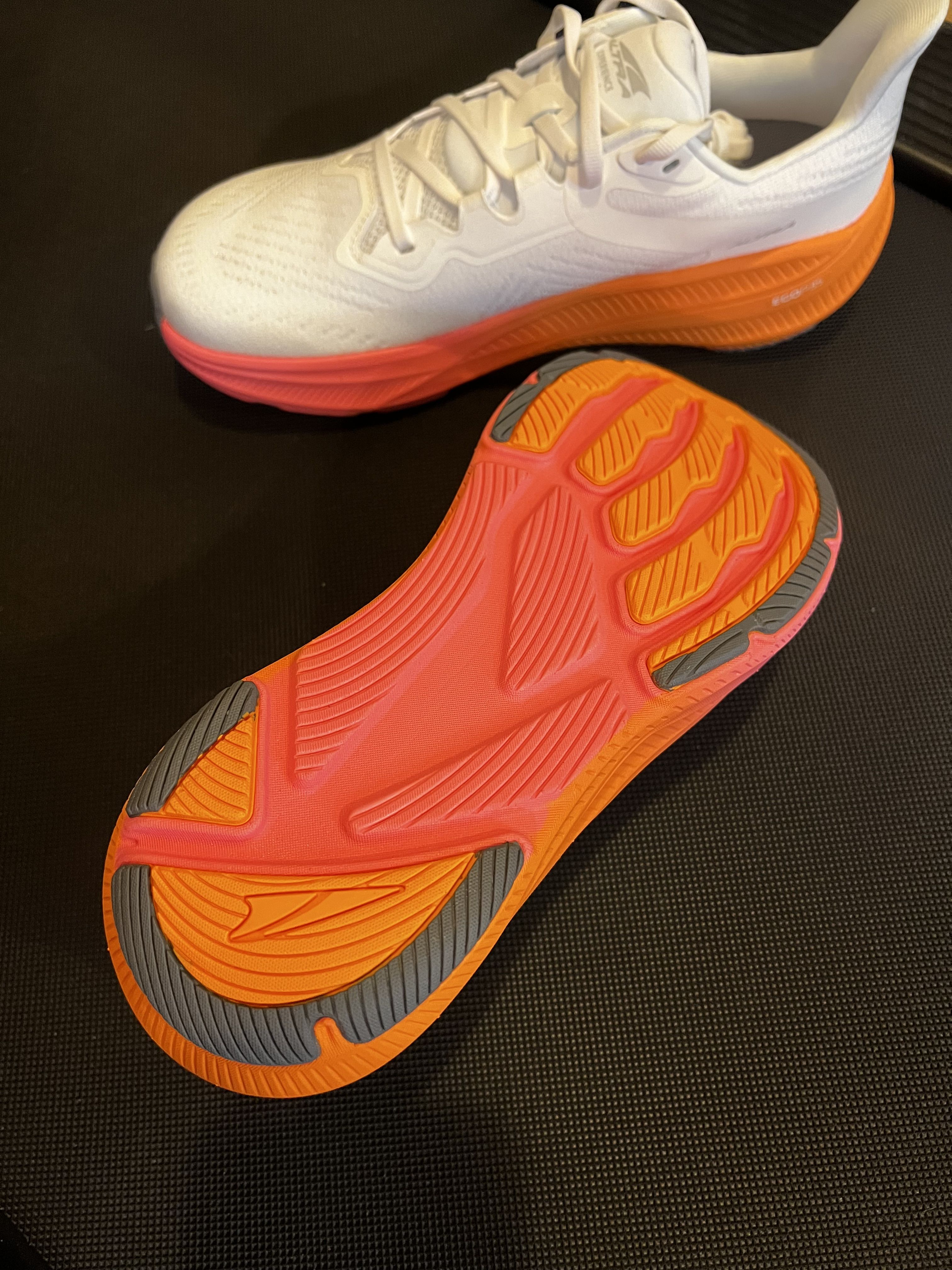 The Flow 2 rides on Altra’s EGO™ P35 midsole foam, a blend designed for efficiency and responsiveness rather than plush softness. Both Abby and Brian found it to be smooth, firm, and stable underfoot, striking a nice middle ground between comfort and performance.