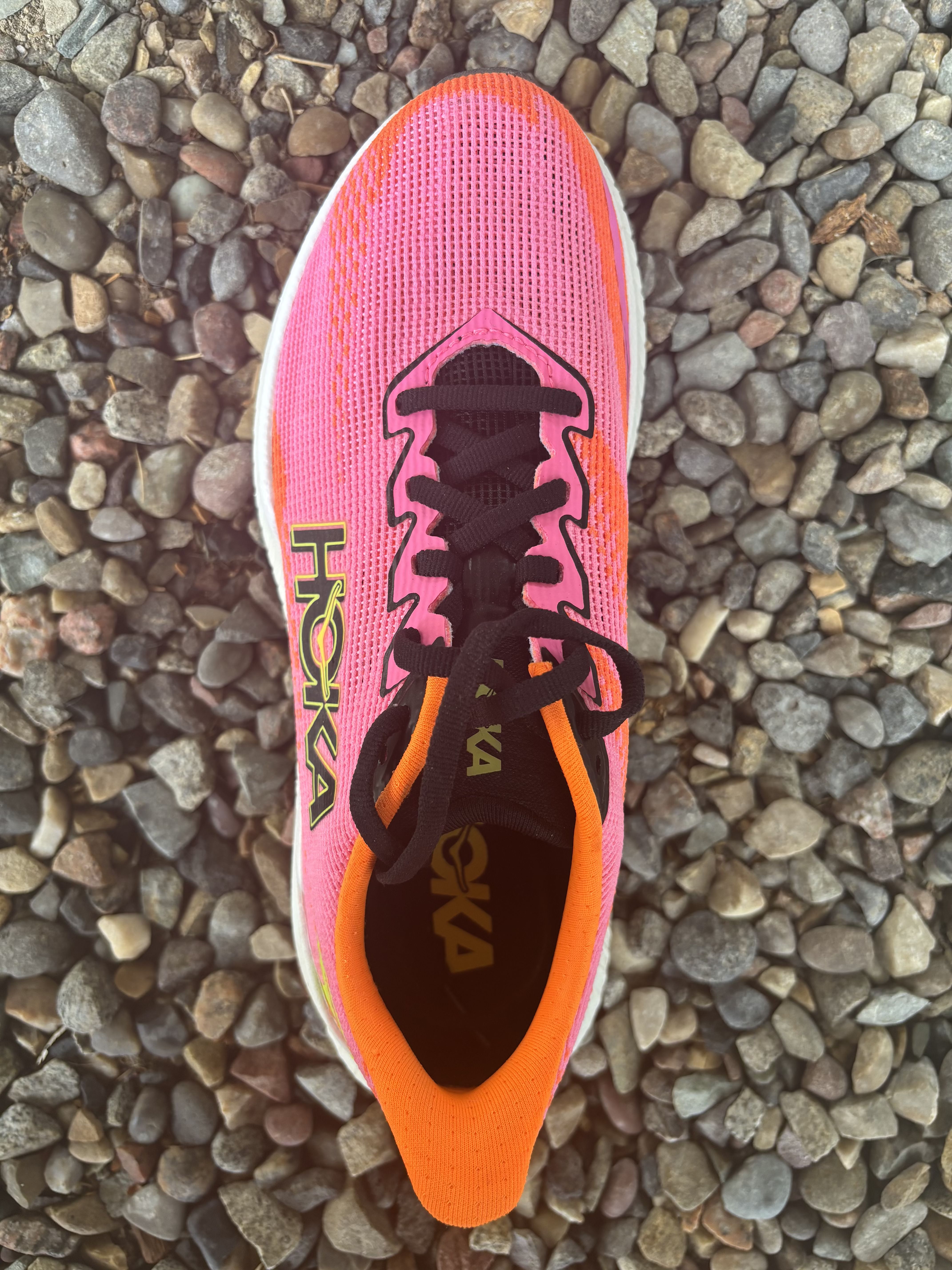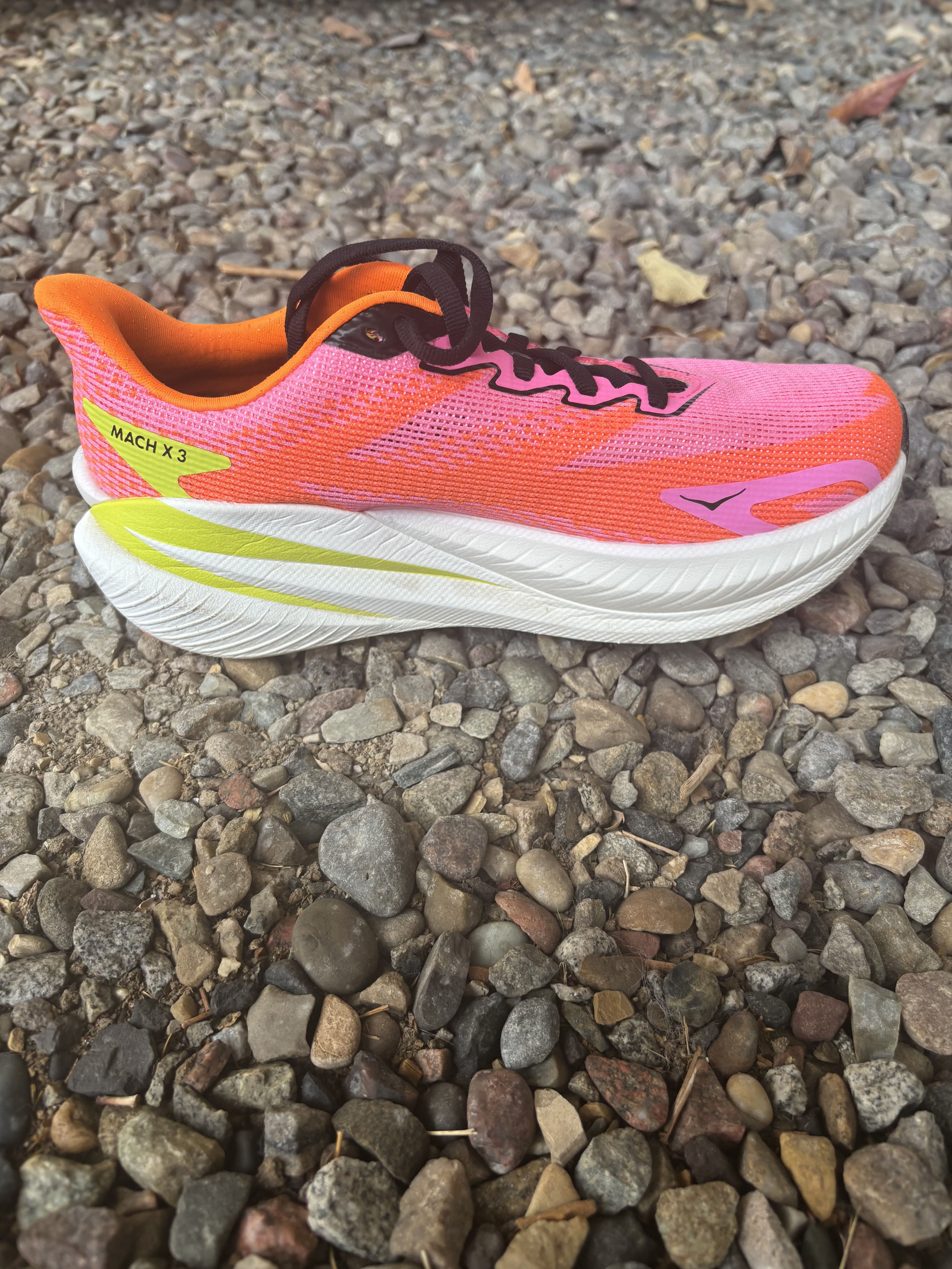 I'll start by acknowledging that I am likely in the minority with this opinion: I miss the Mach X 2. Despite all of its haters, I adored that shoe. It felt light, springy, and energetic in a way that the next iteration lacks in my experience. I think that's due to the updates that Hoka made to the shoe's structure this time around. They changed the upper material from creel mesh to warp knit, which does make for a more durable and protective design, but reduces breathability while adding a noticeable amount of weight and bulk. Hoka also redesigned the heel collar to offer a more padding against the Achilles. The Mach X 2 had become notorious for causing bloody ankles, so I'm sure that most people welcome this change especially... but not me. I never experienced a single hot spot from the collar on the Mach X 2 and loved the breezy, barely-there feel of the minimalist upper construction. The updates increased the shoe's weight from 8oz to 8.6oz in my size, which doesn't seem like it would make much of a difference in theory, but did for me in practice. It felt heavier, clunkier, and less energetic in a side-by-side comparison between the X 2 and X 3 models. More on that later, but my bottom line here is that the structural updates might not be worth their cost in weight for all runners.