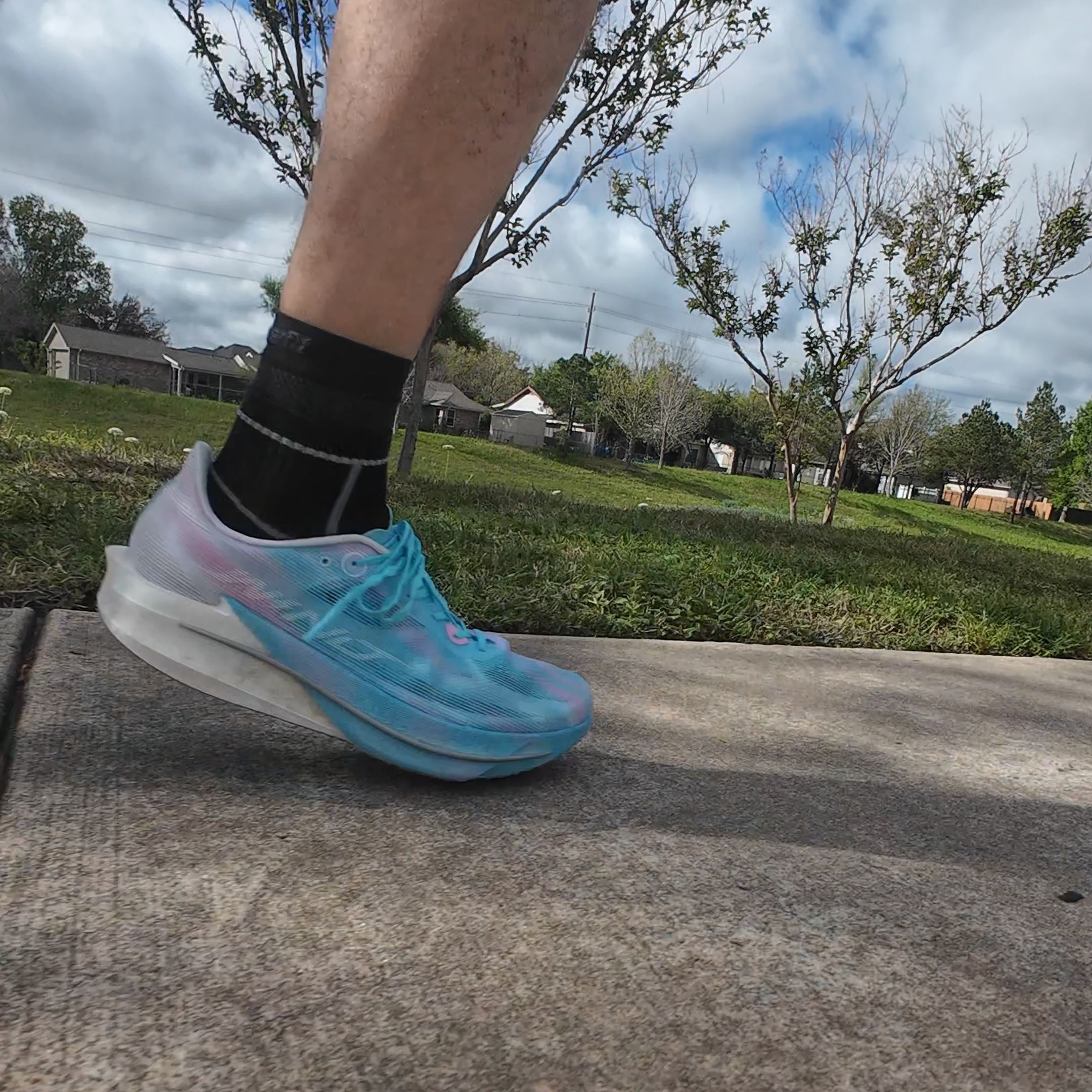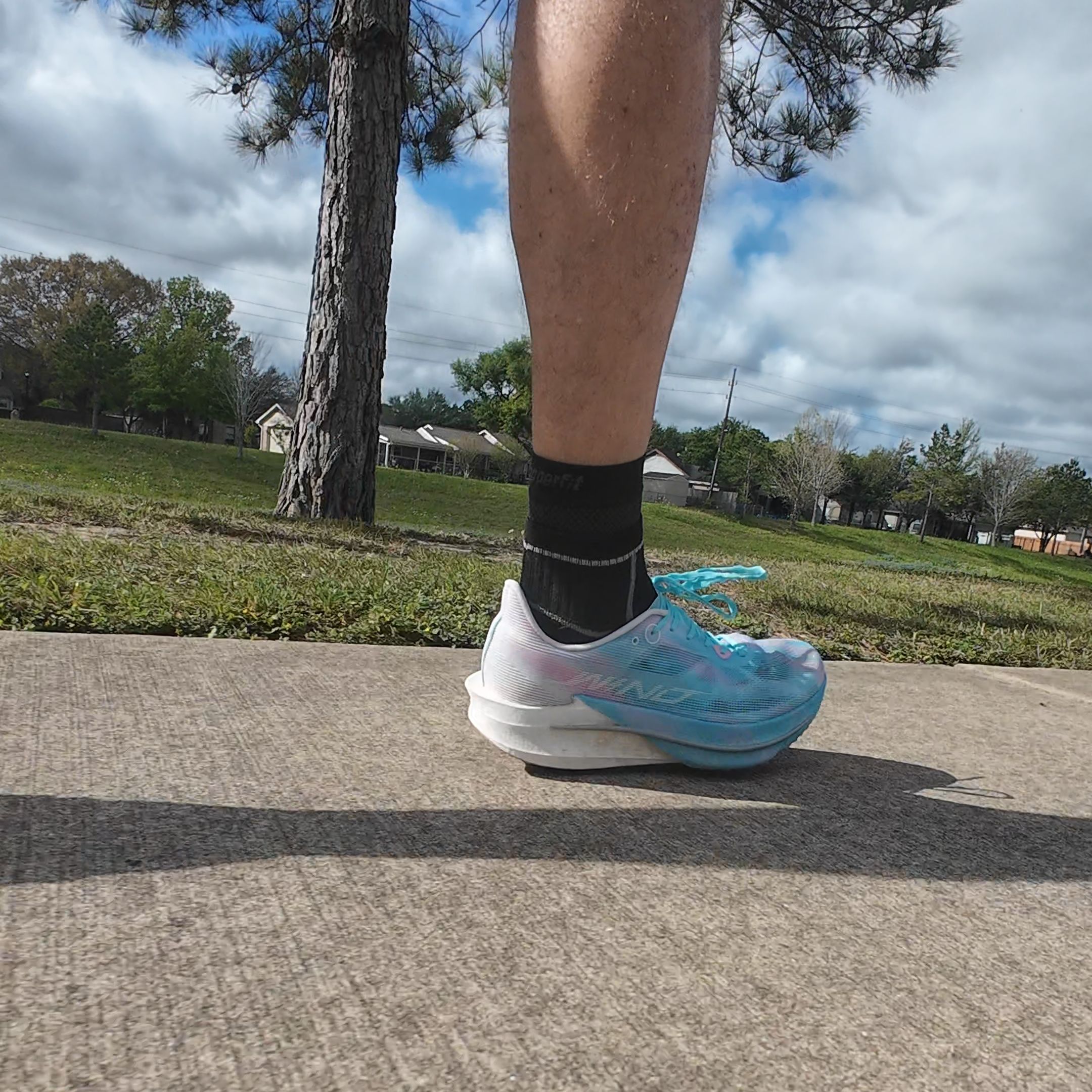 I put in 51 miles overall of running miles and around another 2-3 miles of walking in the shoes. I did up tempo, steady pace, varying speeds, and a long run of 15 miles. I ran on concrete, tarmac, track, dirt in dry conditions, the treadmill and on concrete in wet conditions. I walked on office floors and parking lots. Love CPU type of outsoles for running, but they can be a bit loud on office floors.